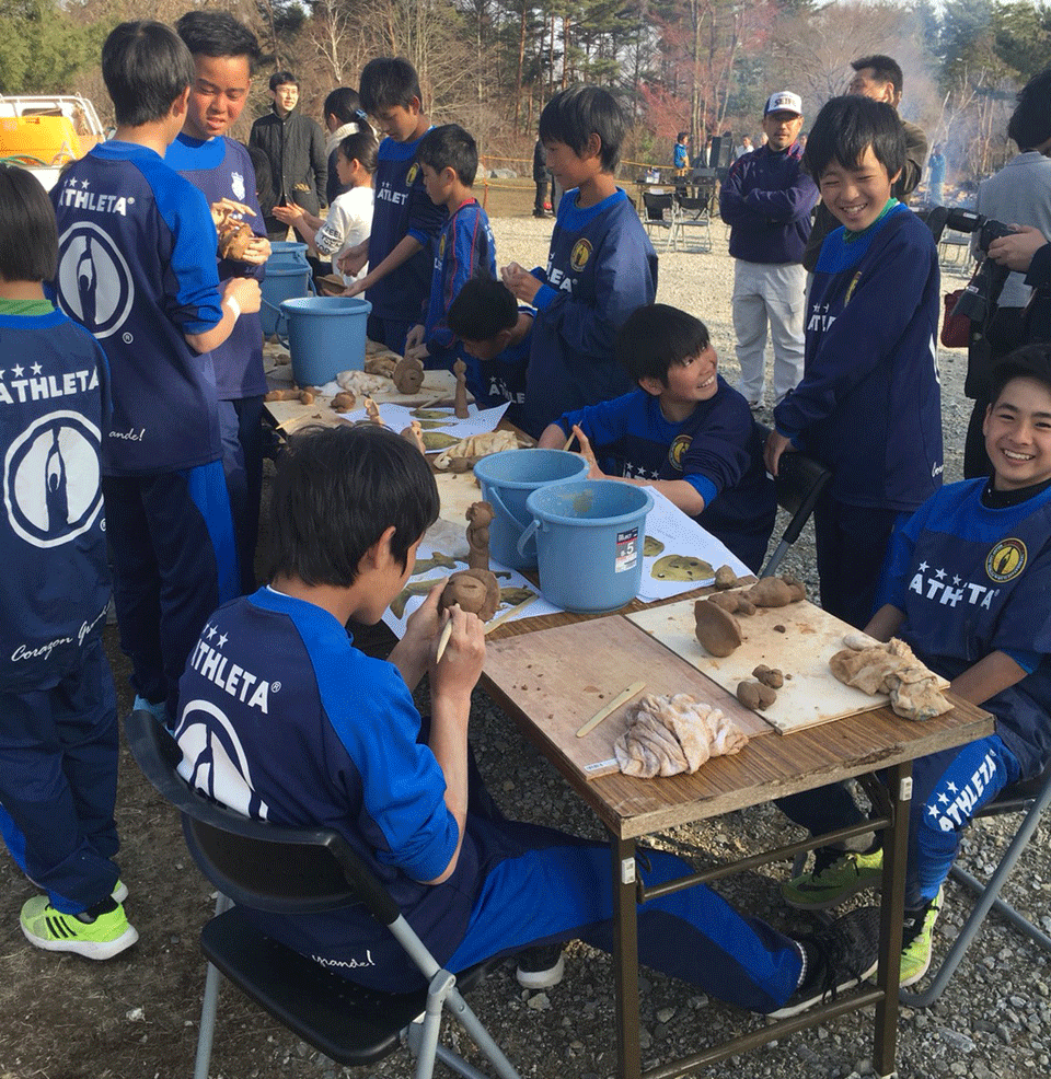 選手達は土偶作りを体験し、縄文太鼓による音楽を楽しみました。