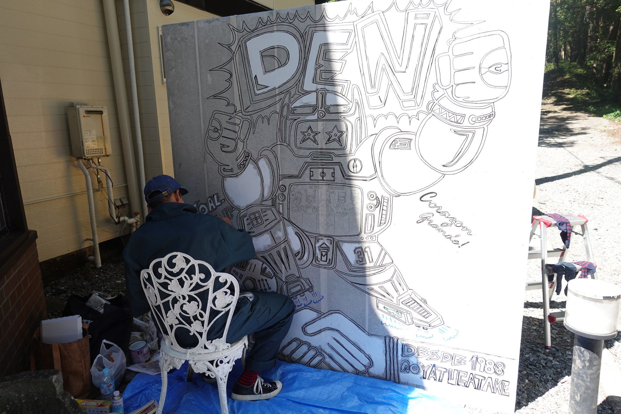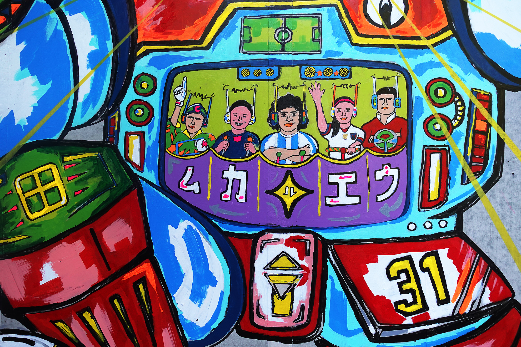 中にいる5人の田畑ファミリーですが、世界的フットボーラーをイメージして描いています。誰だかわかるでしょうか。31番も意味があります。